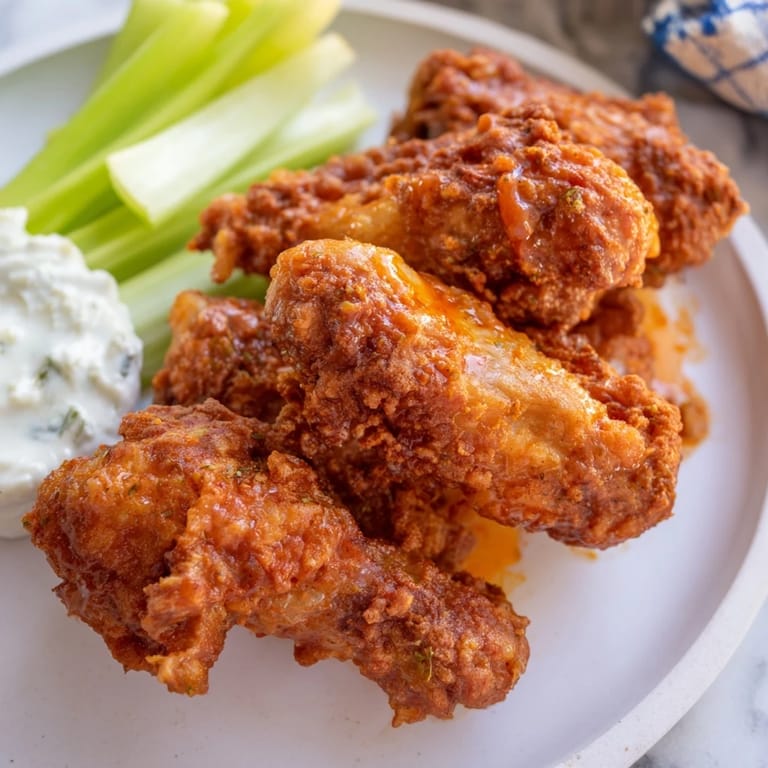 Pin it There's something about the smell of wings hitting hot oil that makes a kitchen feel alive. I discovered the magic of Buffalo wings at a chaotic sports bar gathering where my cousin challenged me to recreate what we'd been ordering for years. The tangy heat combined with that crispy exterior became an obsession, and after a few attempts, I realized the secret wasn't complicated—it was just respect for temperature and timing. Now whenever I make these, I'm transported back to that crowded bar, except here in my kitchen, surrounded by friends waiting impatiently.