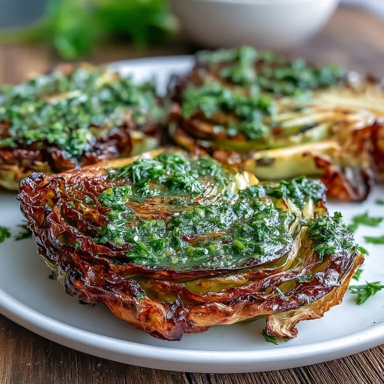 Pin it The first time I served this to a group, someone asked if I had grilled the cabbage because the char was so pronounced. I had not, just a hot oven and a little patience. We ate with our hands, tearing off pieces and dipping them back into the leftover chimichurri pooled on the plate. It felt more like a gathering than a meal, and that is exactly what good food should do.
