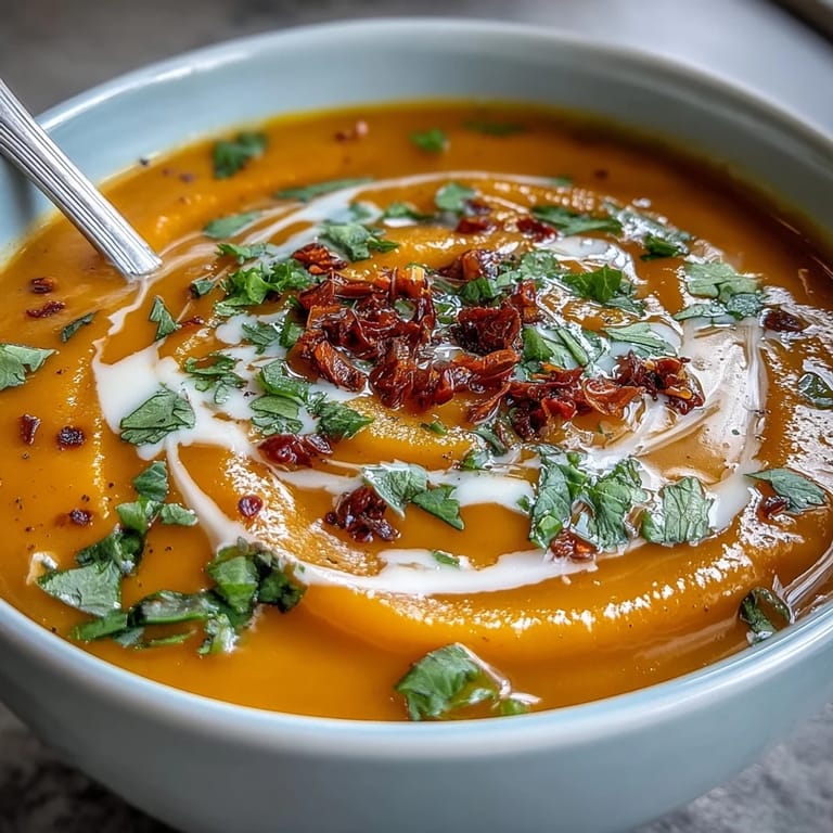Serve this vibrant soup hot, topped with fresh coriander and a dollop of vegan yogurt. It pairs exceptionally well with crusty gluten-free bread or a sprinkle of toasted seeds for a satisfying, crunchy contrast.