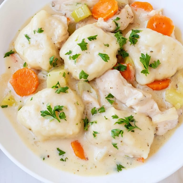Pin it There's something about the smell of chicken and dumplings simmering on a cold afternoon that instantly transports you back to feeling cared for. I learned to make this from watching my grandmother work through a pot of it, not really following a recipe, just knowing when the broth looked right and when the dumplings had puffed just enough. What struck me most was how she'd taste it halfway through and make tiny adjustments, never rushing, never overthinking it. That's when I realized this dish isn't about precision—it's about giving yourself permission to create something warm and generous for the people around you.