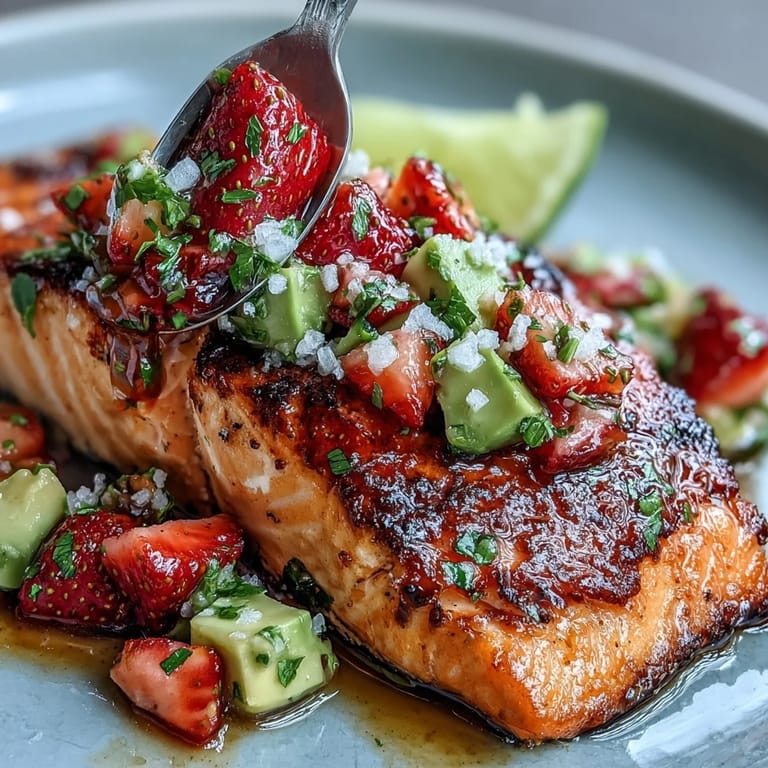 Pin it There was a spring evening when the air felt impossibly crisp, and grilling seemed like the only answer to the question of dinner. The berries on my counter looked so sun-soaked I could almost hear them calling out for a savory companion. Salmon always felt a bit fancy in my family, yet the idea of topping it with something so brightly unexpected had me grinning before I even switched on the grill. Slicing strawberries with the window open, I caught a whiff of fresh cilantro and realized this would be no ordinary Tuesday meal. That first whiff of smoked paprika meeting citrus told me even the neighbors would be jealous.