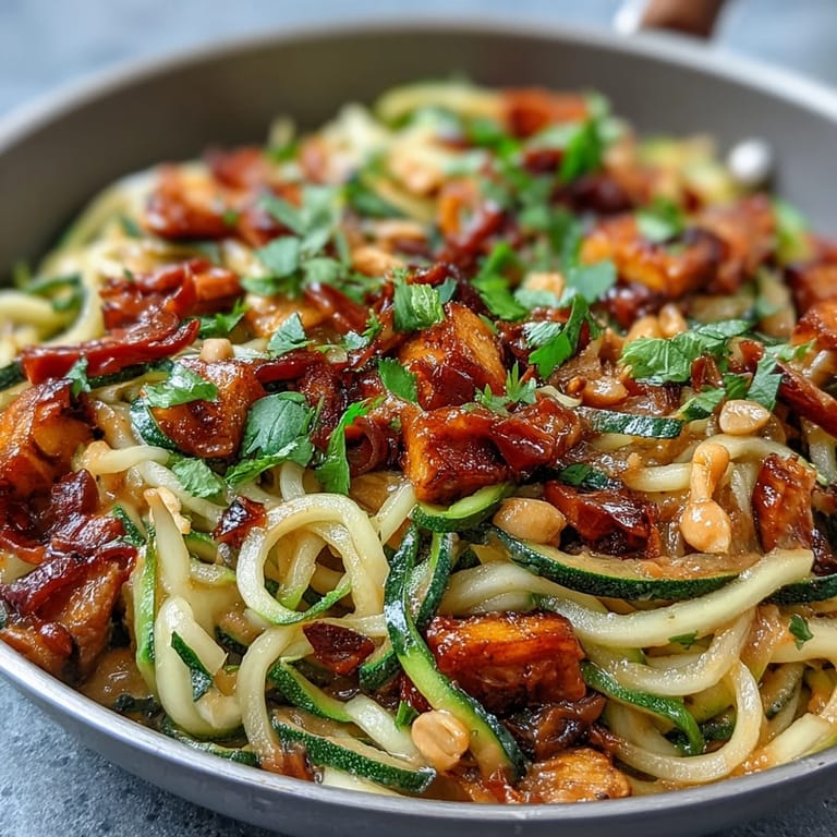Pin it The beauty of this dish lies in its versatility and fresh flavors. Spiralized zucchini creates a pasta-like base that absorbs the rich peanut sauce beautifully, while crisp bell peppers, carrots, and snap peas add satisfying crunch and vibrant color. The sauce itself is a revelation—naturally creamy peanut butter whisked with tangy lime juice, aromatic ginger and garlic, and just a touch of maple syrup for balance. It's Asian-inspired comfort food that happens to be incredibly good for you, proving that healthy eating never has to be boring or bland.